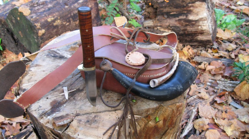 accoutrements and knife by blackpowder beagles Published 05/14/2012 at 3264 × 1832 in BPB Gallery BPB made accoutrements for Lynx’s 36 cal Southern Mt. rifle. Cowhide pouch, deer antler measure, bison powder horn. The knife became a prize at our annual Avon Hills Black Powder Shoot. Like Loading...