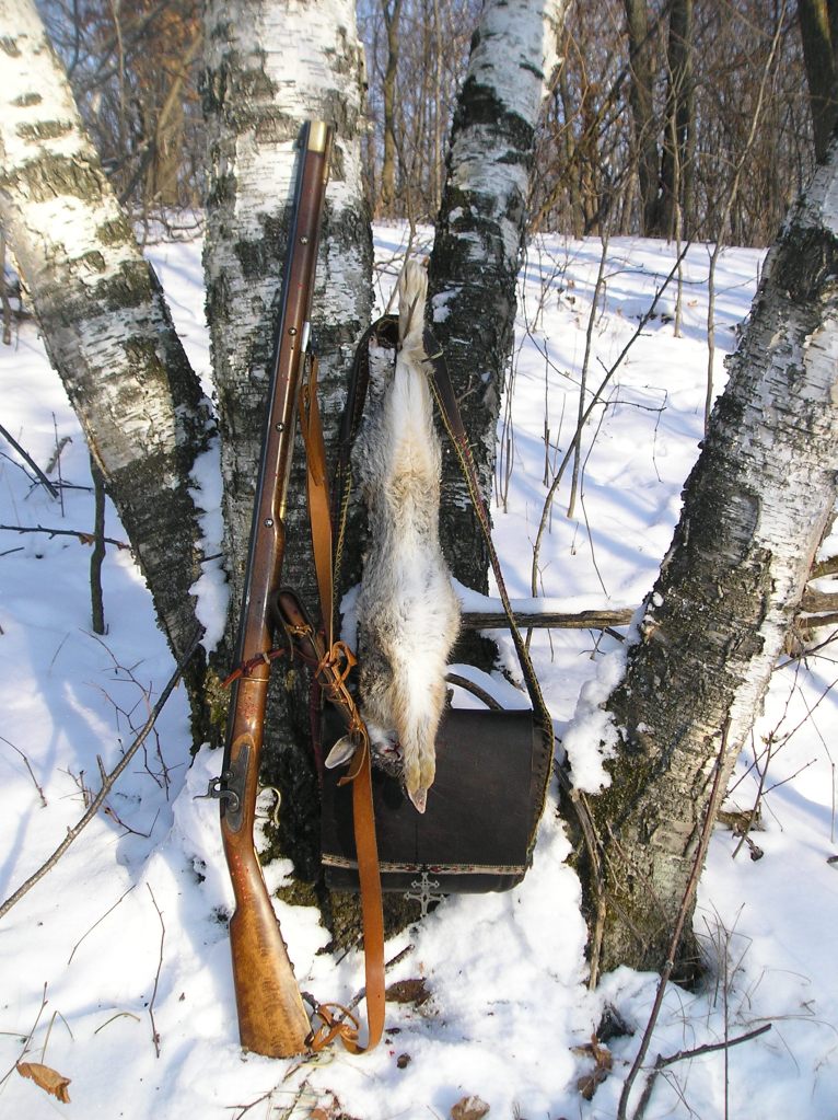 OLYMPUS DIGITAL CAMERA Published 06/19/2012 at 1712 × 2288 in BPB Gallery Cottontail, 50 cal Kentucky rifle, Snowshoe’s fine custom homemade possibles bag, paper birch, snow on the ground, brisk day. Ahhh, good times. Like Loading...